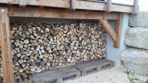 Les bûches ne doivent pas être placées à même le sol, car elles absorberont l’humidité qui y est présente. Il faudra donc qu’elles reposent sur une base telles que, par exemple, des palettes ou des dalles, qui surélèveront les bûches et permettront de les aérer (image ci-dessous).